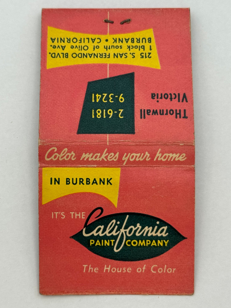 "California Paint Company" Burbank. CA Vintage Feature Matchbook