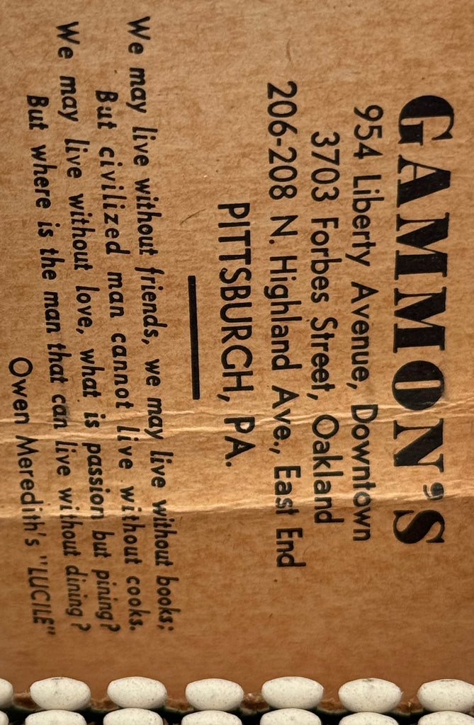 "Gammon’s" Pittsburgh, PA Vintage Feature Matchbook