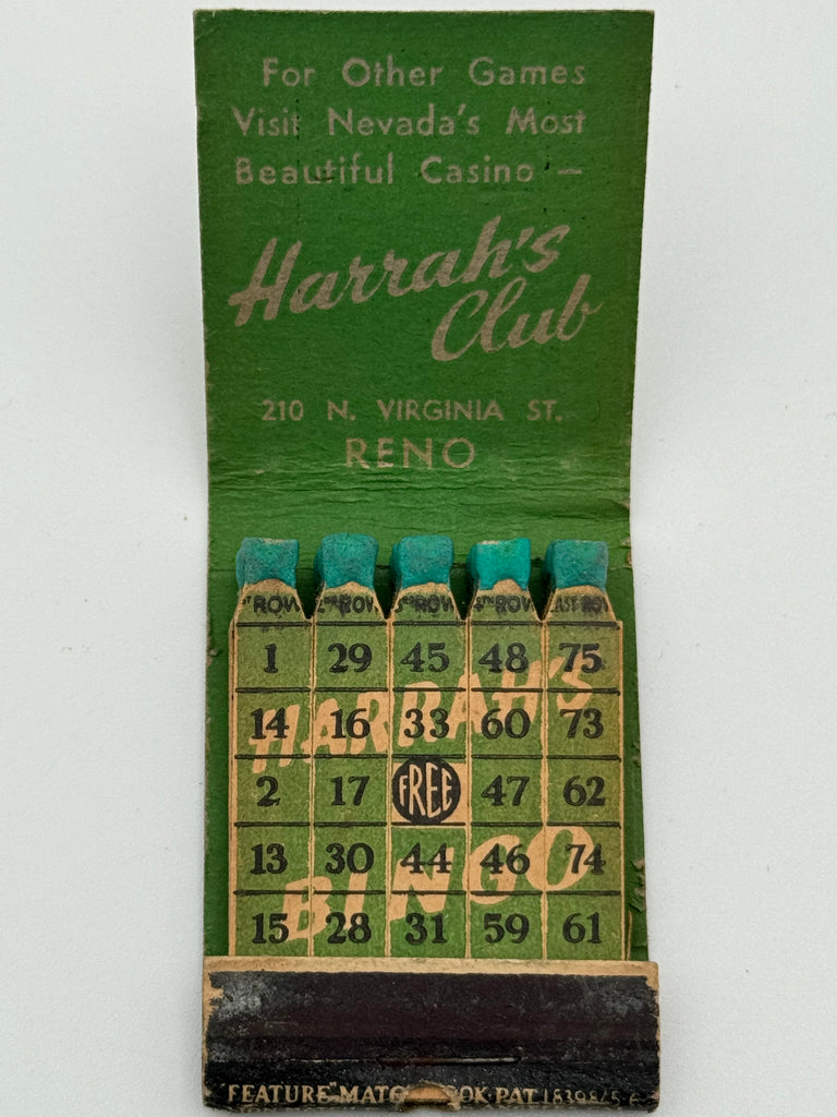 "Harrah’s Club / BINGO" Reno, NV Vintage Feature Matchbook