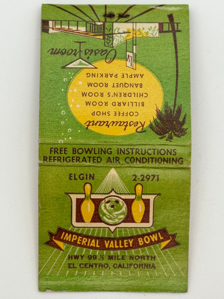 "Imperial Valley Bowl" El Centro, CA Vintage Feature Matchbook