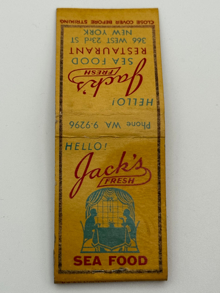 "Jack’s Sea Food Restaurant" New York, NY Vintage Feature Matchbook