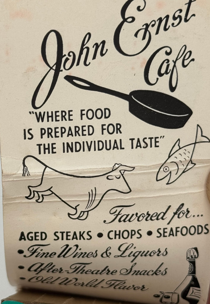 "John Ernst Cafe" Milwaukee, WI Vintage Feature Matchbook