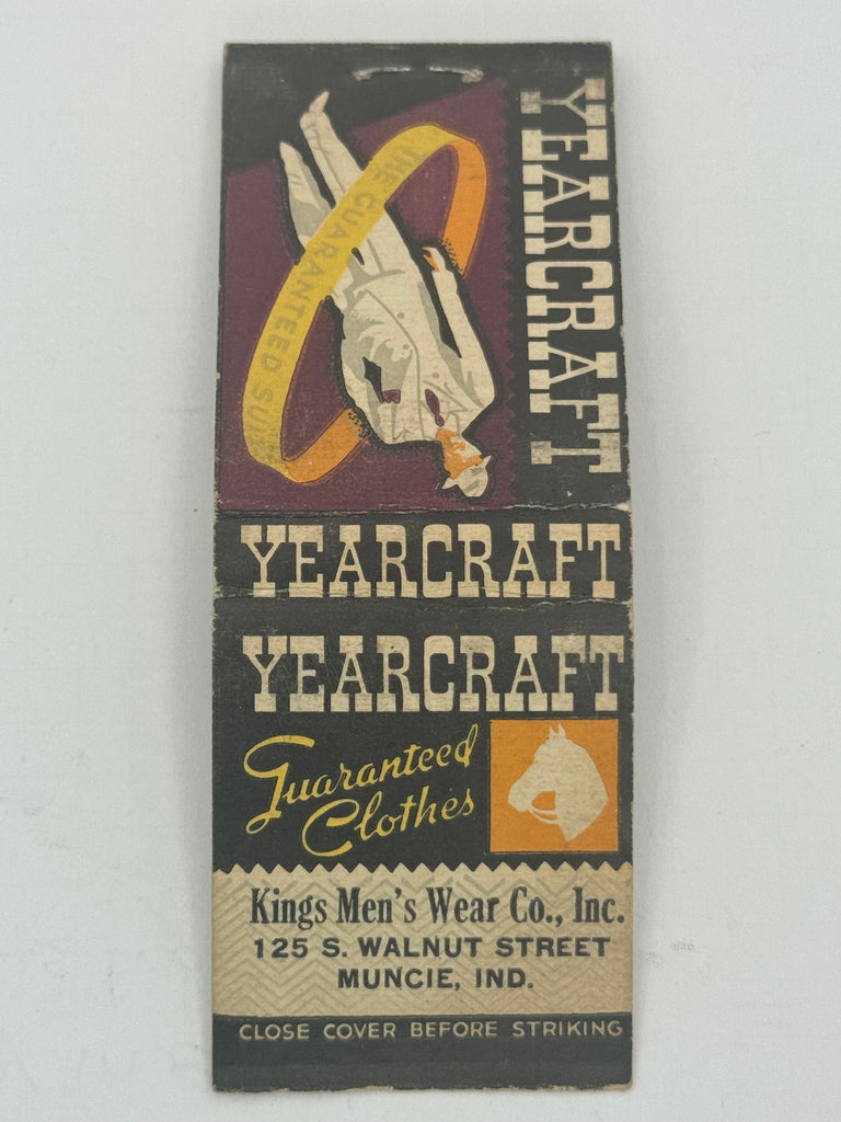 "Kings Men’s Wear Co. Inc. / Yearcraft" Muncie, IN Vintage Feature Matchbook