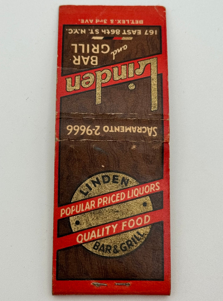 "Linden Bar and Grill" New York, NY Vintage Feature Matchbook