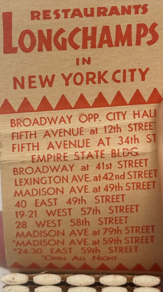 Lot of 2 "Longchamps" NYC, NY Vintage Feature Matchbook