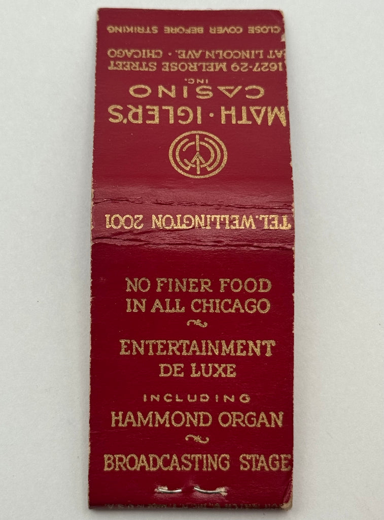 "Math Igler’s Casino" Chicago, IL Vintage Feature Matchbook