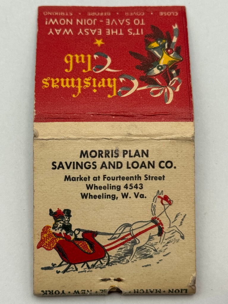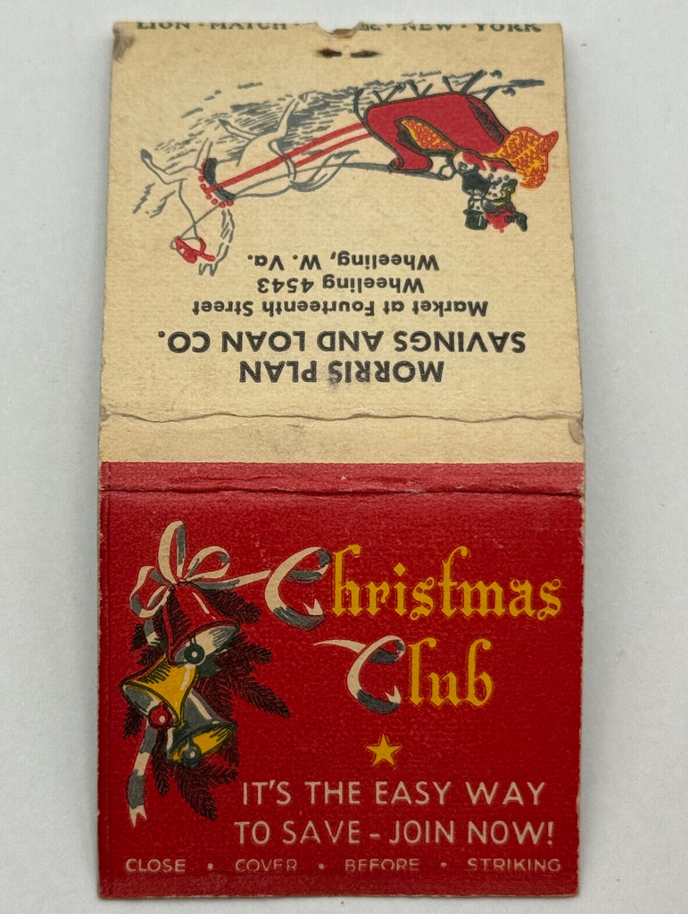 "Morris Plan Savings and Loan Co. / Christmas Club" Wheeling, W VA Vintage Feature Matchbook