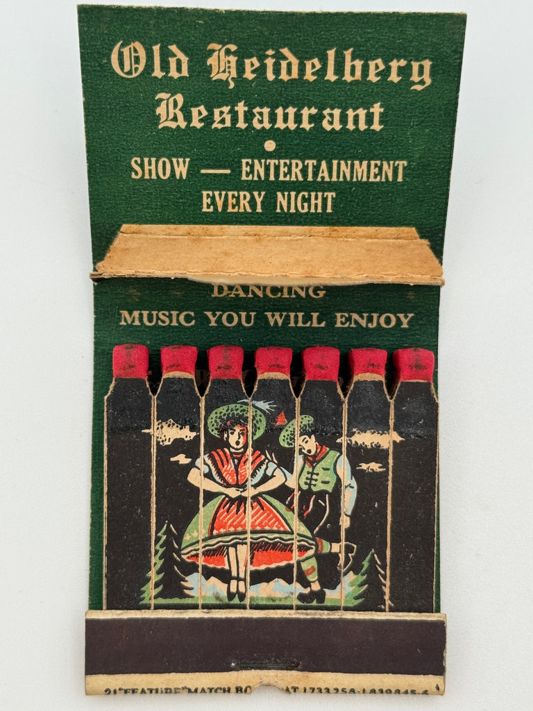 "Old Heidelberg Restaurant" Hallandale, FL Vintage Feature Matchbook with a Pop-Up Display!