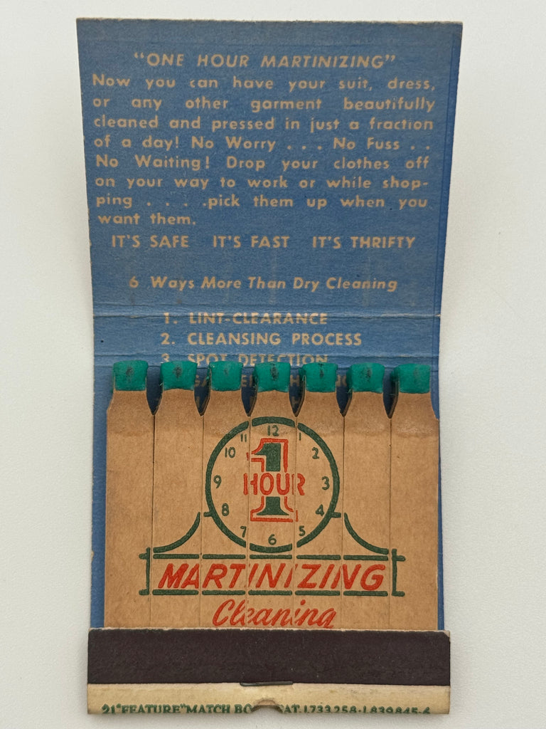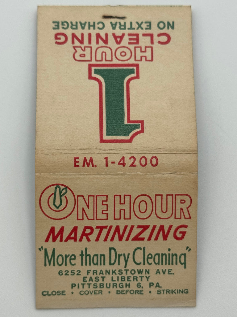 "One Hour Martinizing" Pittsburgh, PA Vintage Feature Matchbook