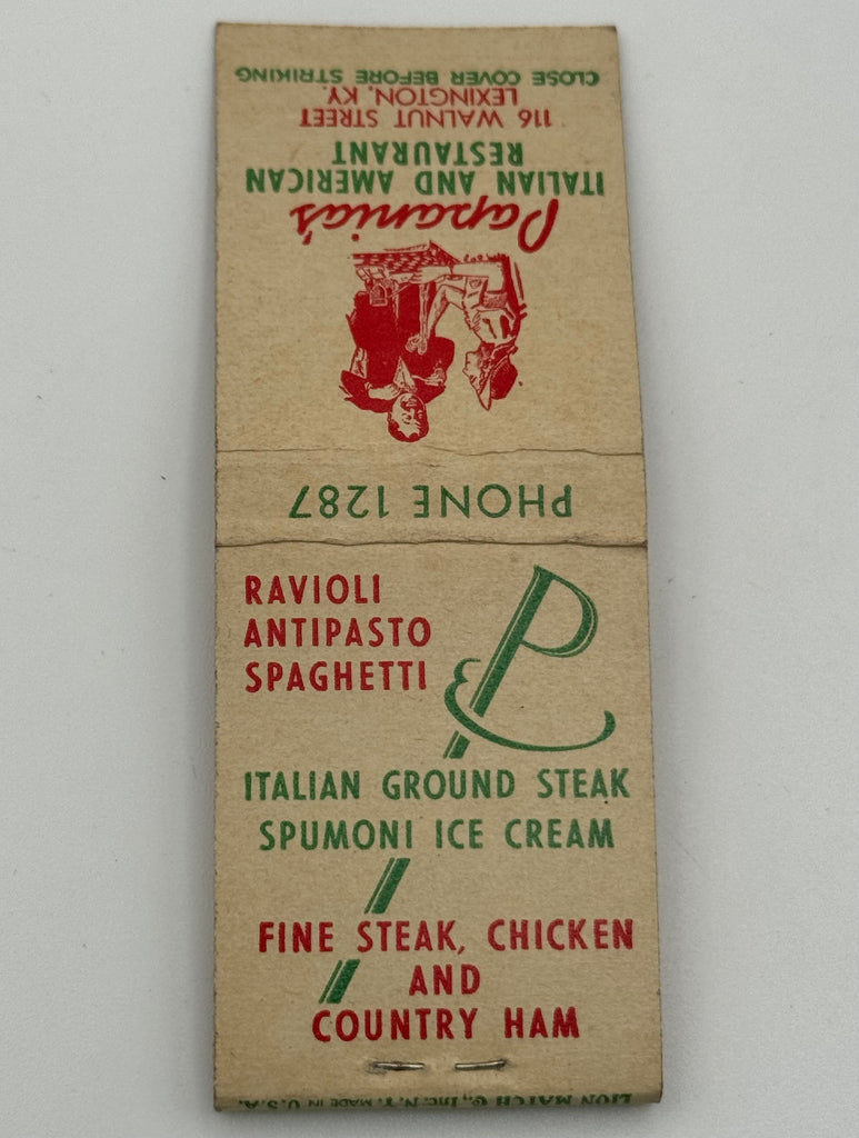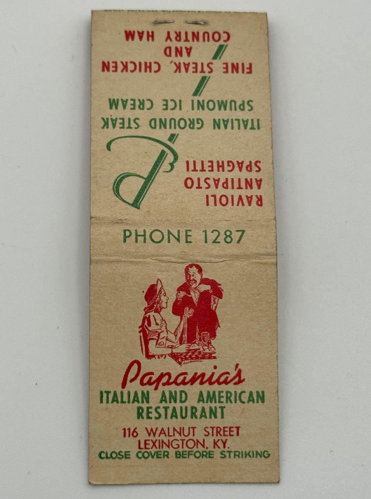"Papania’s" Lexington, KY Vintage Feature Matchbook