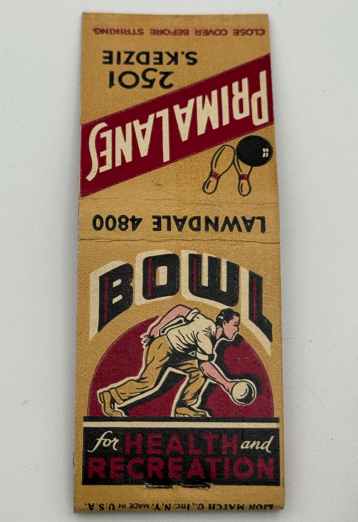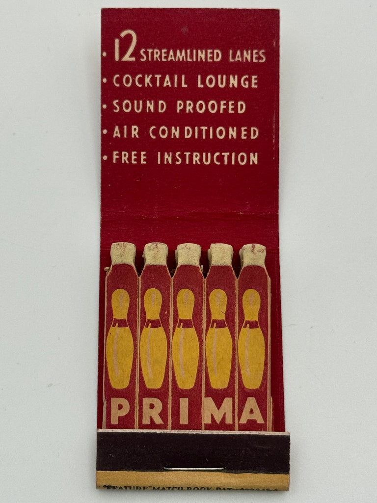 "Prima Lanes" Chicago, IL Vintage Feature Matchbook