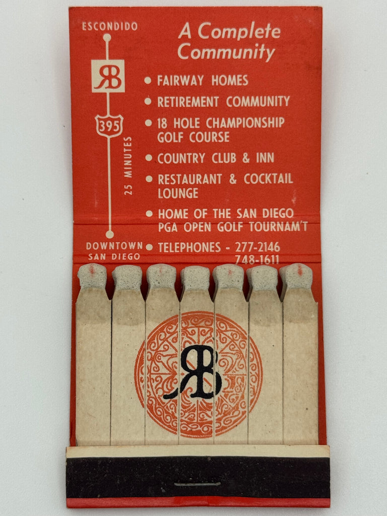 "Rancho Bernardo" San Diego, CA Vintage Feature Matchbook