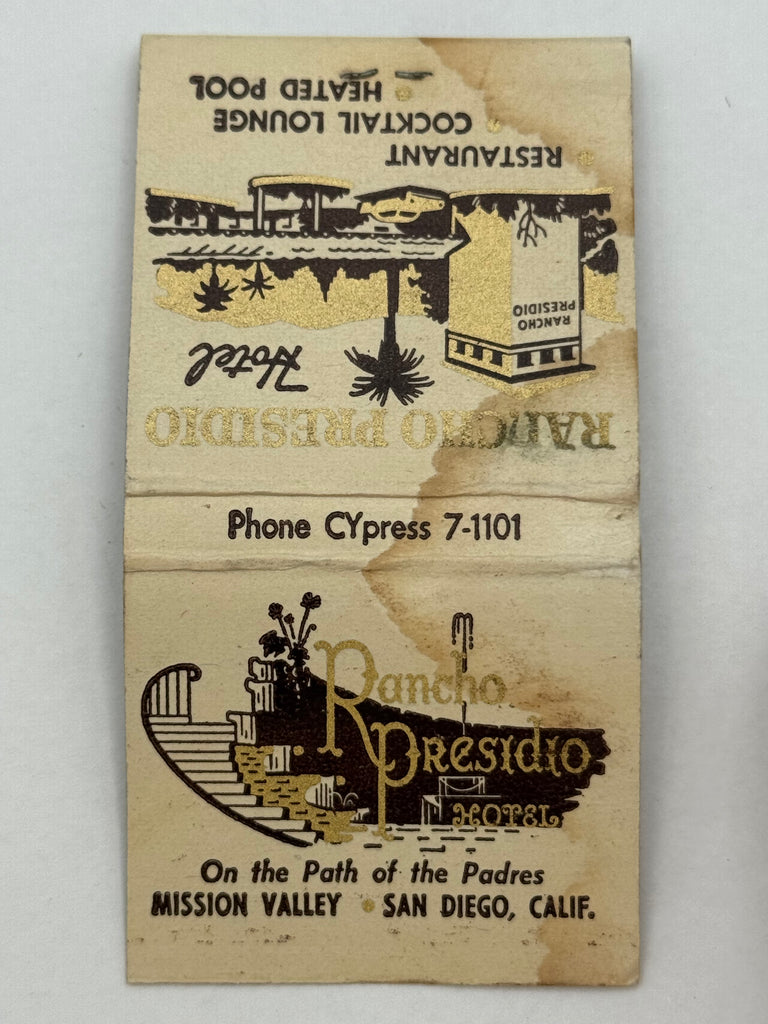 "Rancho Presidio Hotel / Adobe Room" San Diego, CA Vintage Feature Matchbook