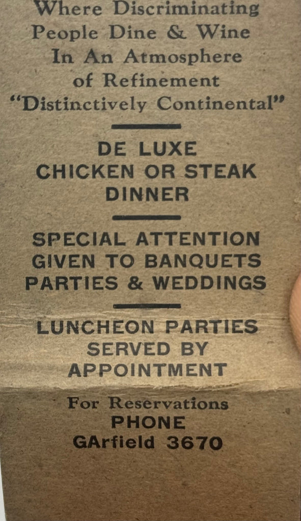 "Rex Italian Restaurant" Vintage Feature Matchbook