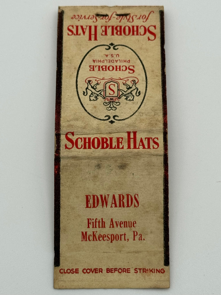 "Schoble Hats / Edwards" Phila, PA Vintage Feature Matchbook