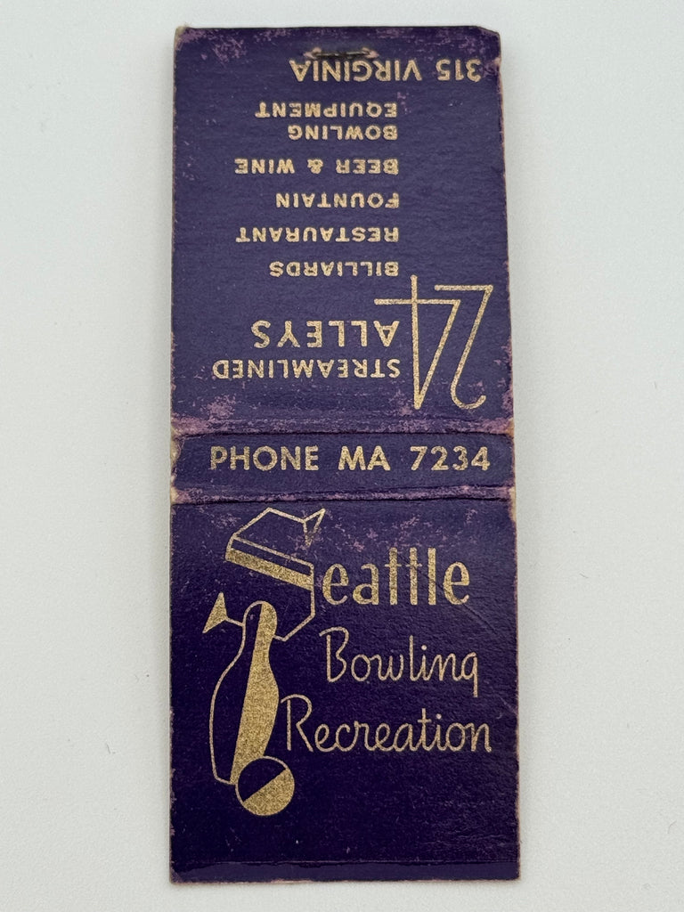 "Seattle Bowling Recreation" Seattle, WA Vintage Feature Matchbook -2
