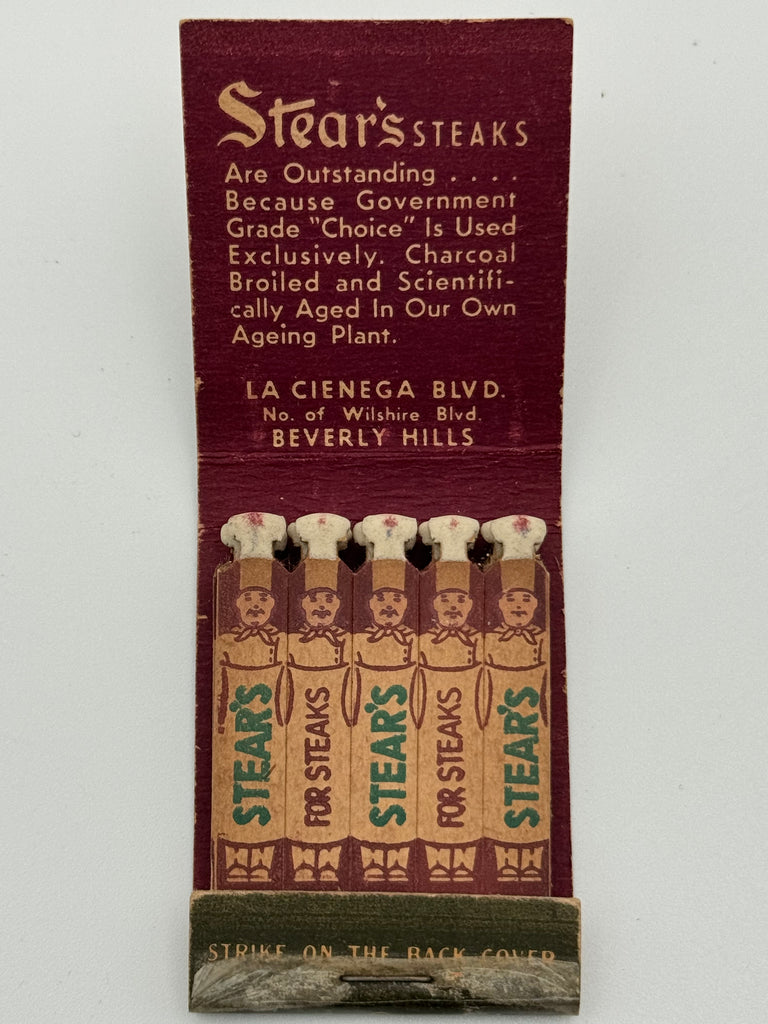 "Stear's" Beverly Hills, CA Vintage Feature Matchbook