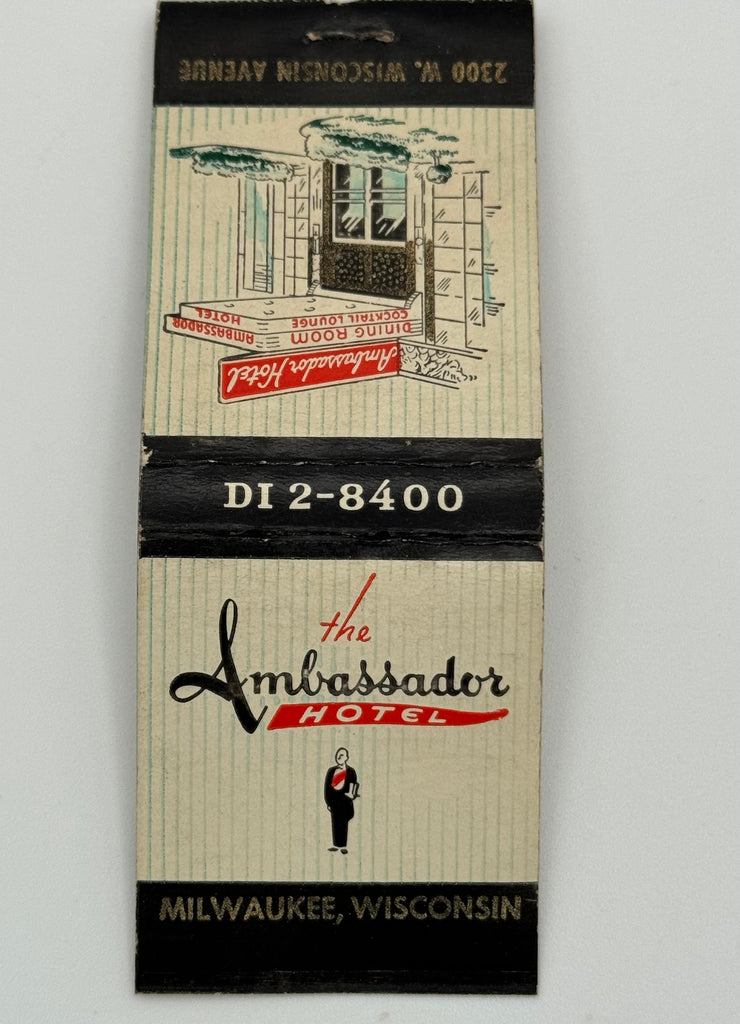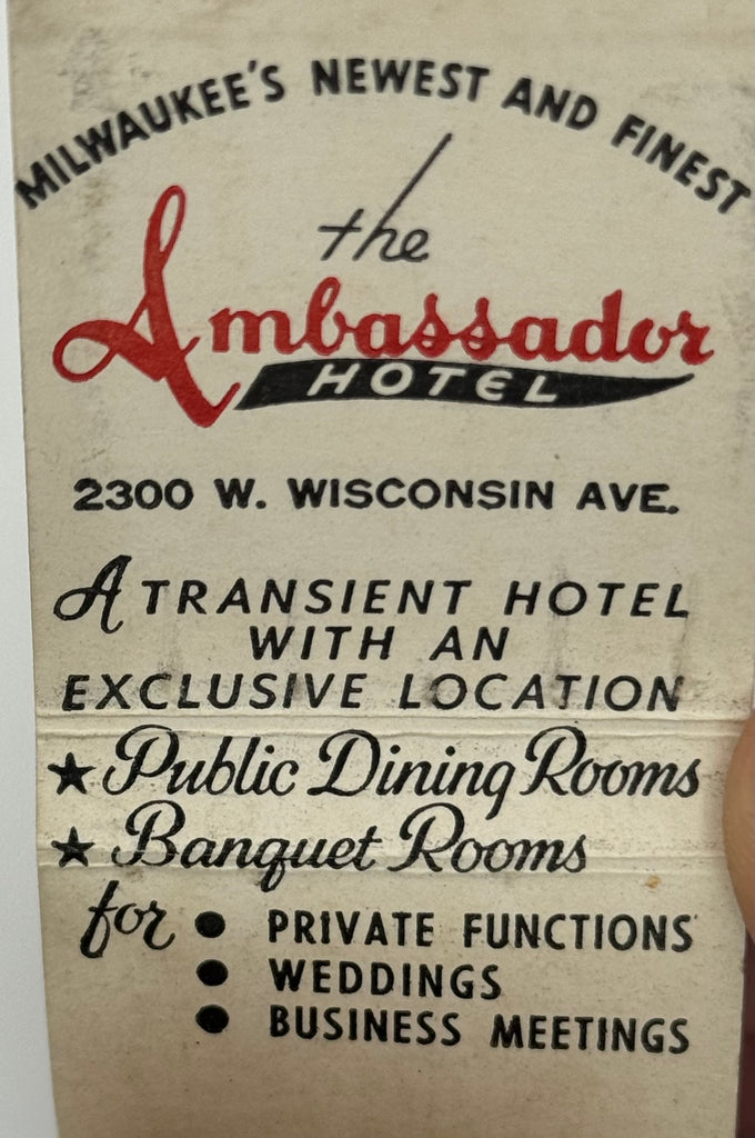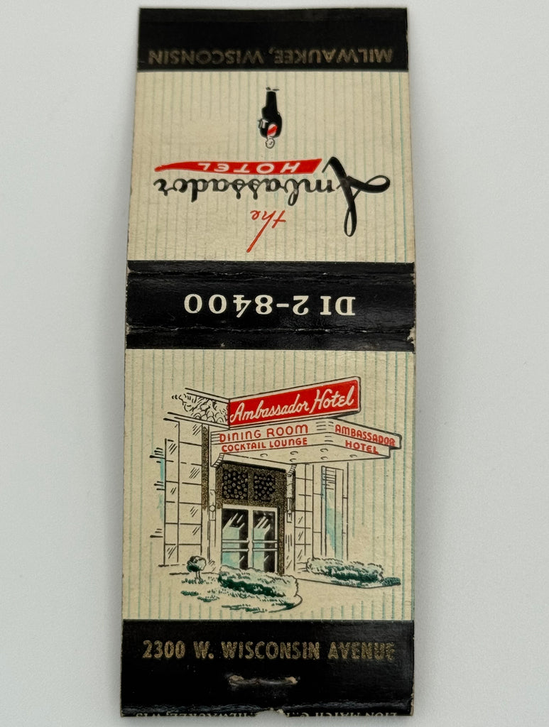"The Ambassador Hotel" Milwaukee, WI Vintage Feature Matchbook