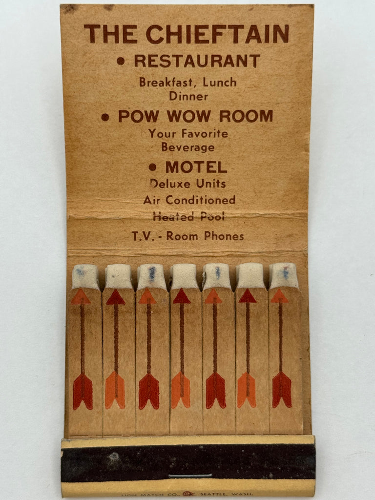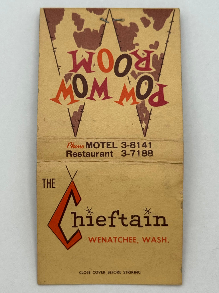 "The Chieftain / Pow Wow Room" Wenatchee. WA Vintage Feature Matchbook