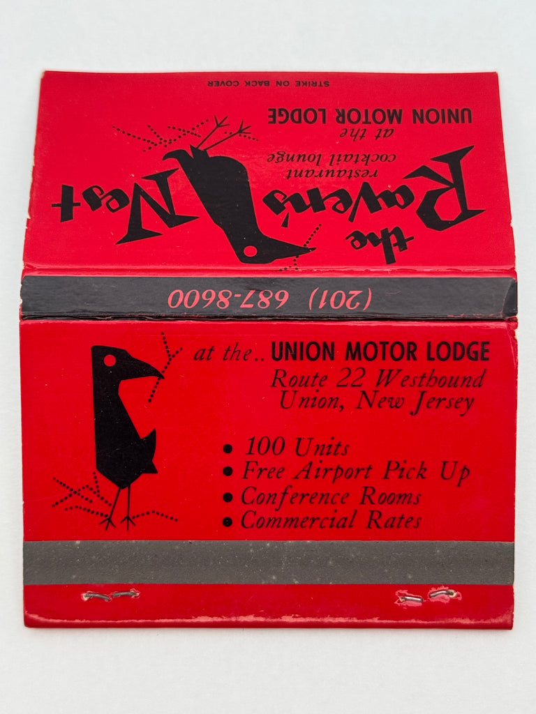 "The Raven’s Nest" Union, NJ Vintage Feature Matchbook