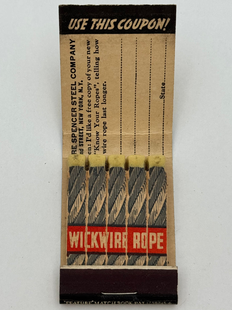 "Wickwire Spencer Steel Co." New York, NY Vintage Feature Matchbook