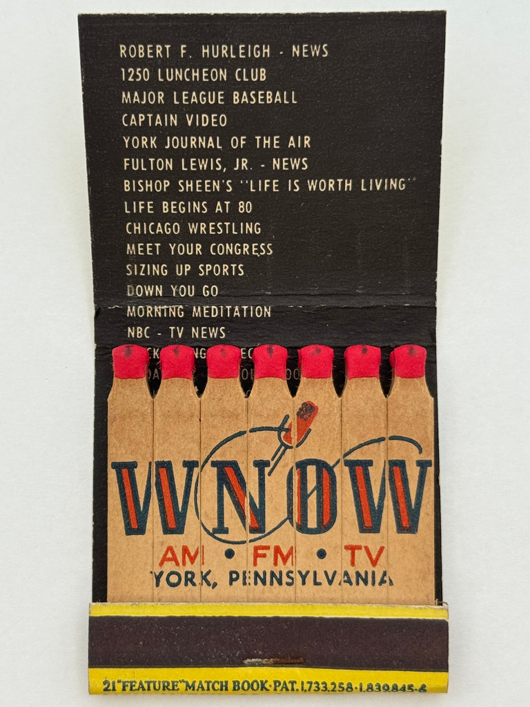 "WNOW" York, PA Vintage Feature Matchbook